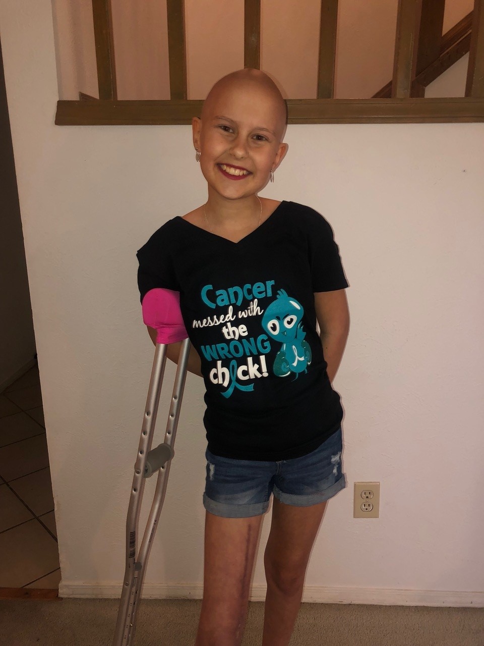 Jazmin was having pain for about 2 and a half weeks in her right leg and knee, but I didn’t think it was anything serious. On, Monday January 21, 2019, she was in a lot of pain. Her right leg and knee were swollen and didn’t look like the other. I took her to the doctor the next day and we ended up at Children’s Hospital Colorado North for an X-ray. They called and said Jazmin had a mass that was eating away at her bone. Two days later, we went for an MRI and another X-ray and then met with the Orthopedic doctor. The outcome definitely wasn’t what we wanted to hear.