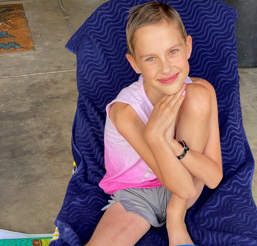 Jazmin underwent an 8+ hour surgery on May 6, 2019. She had two blood transfusions and was in the ICU for 24 hours. The surgery went well and the whole tumor was successfully removed from her femur.