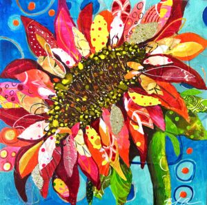 Behnaz Ahmadian is a self-taught Iranian American artist based in Highlands Ranch, Colorado. She is an artist, interior designer, and art instructor. After establishing her career in interior design, she began creating her own line of vibrant artwork. She works primarily in acrylic and mixed media, with a focus on collage, painting, and hand-painted papers.