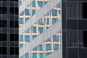 Walking through Downtown Denver recently I walked on a couple of streets which I had not been on recently. Keeping an eye out for something interesting in the buildings, I noticed this reflection in the distance. Having a little longer lens on my camera than I would normally use allowed me to see this new perspective. I think what drew me in for this photograph was the contrast between the light and dark while the colorful building being reflected eliminates the thought that this could be a black and white photograph.