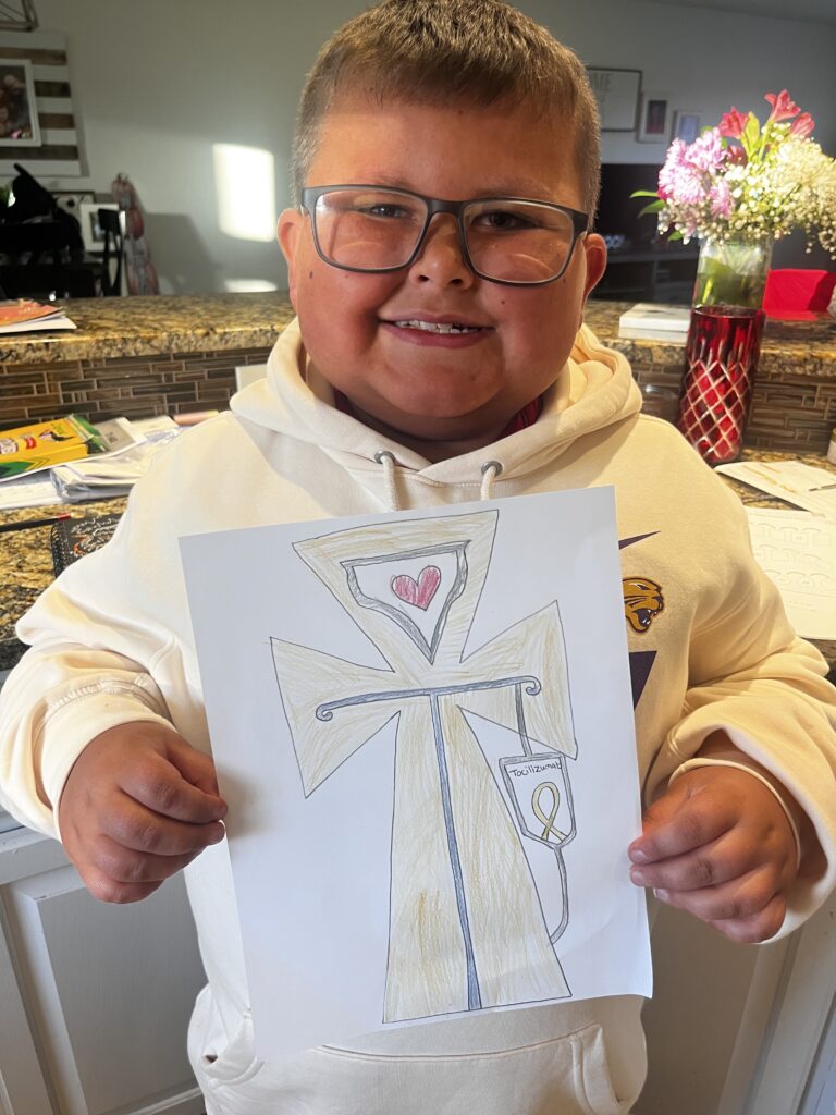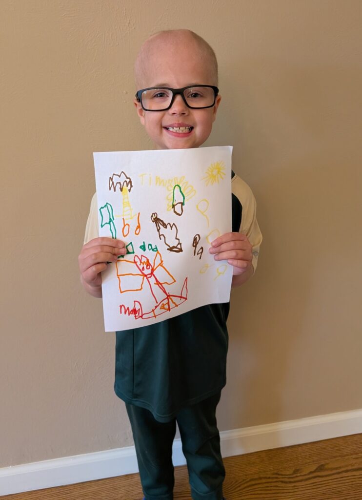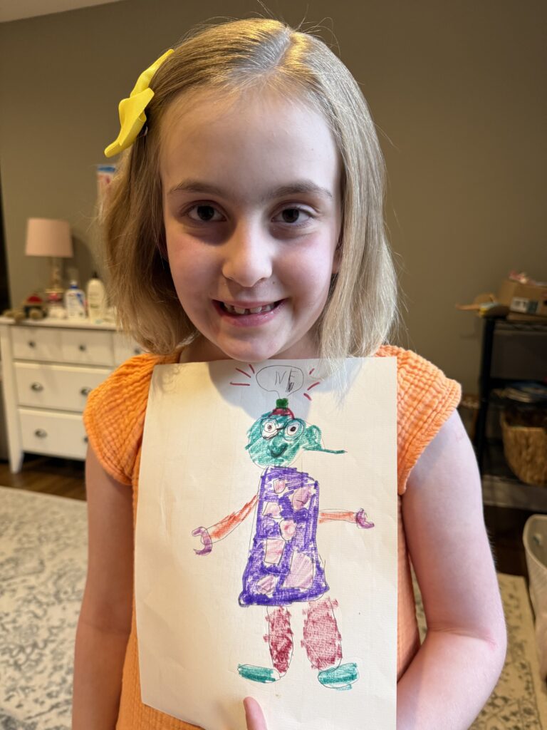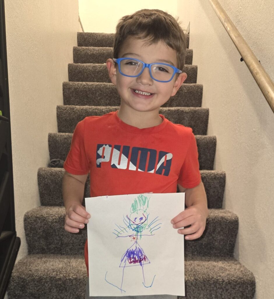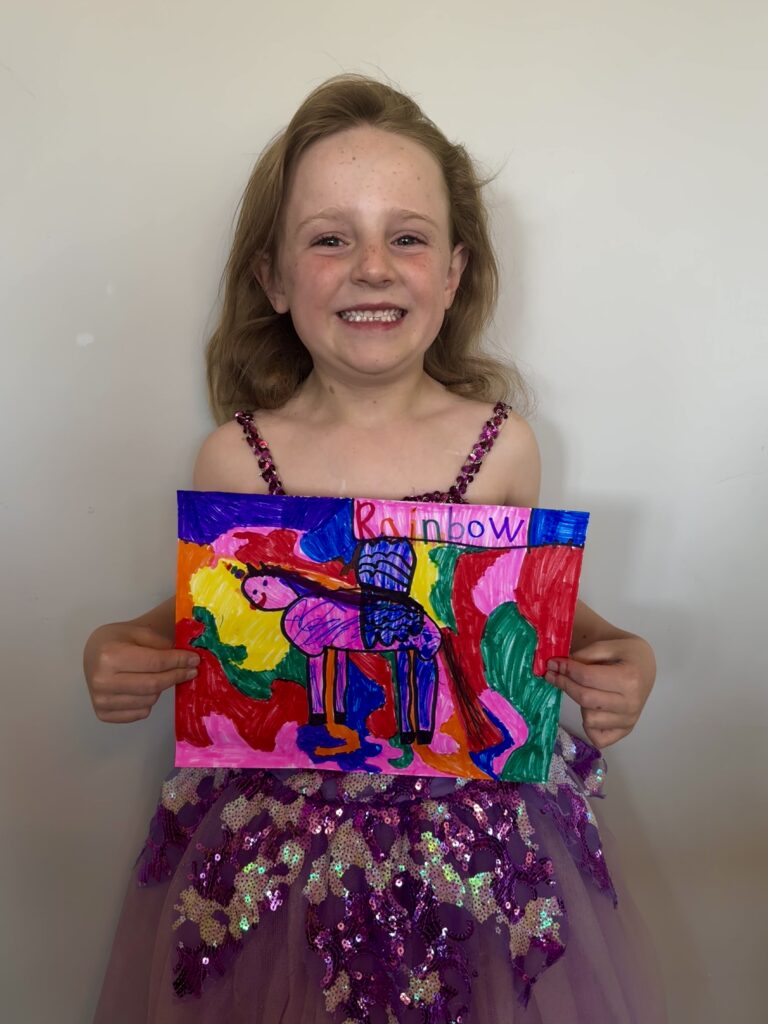 For each artma event, the Ponzio Creative Arts Therapy team at Children’s Hospital Colorado, coordinates an art project with kids in treatment in the Pediatric Center for Cancer and Blood Disorders. For our 2026 event, 20 kids, teens, and young adults participated by creating a drawing of their personal protector or fighter – someone or something that helps them stay strong, brave, and hopeful, complete with a name and a description of what makes them special. Then, an artist from Glass Artists of Colorado transformed the two-dimensional drawing into a three-dimensional glass sculpture.