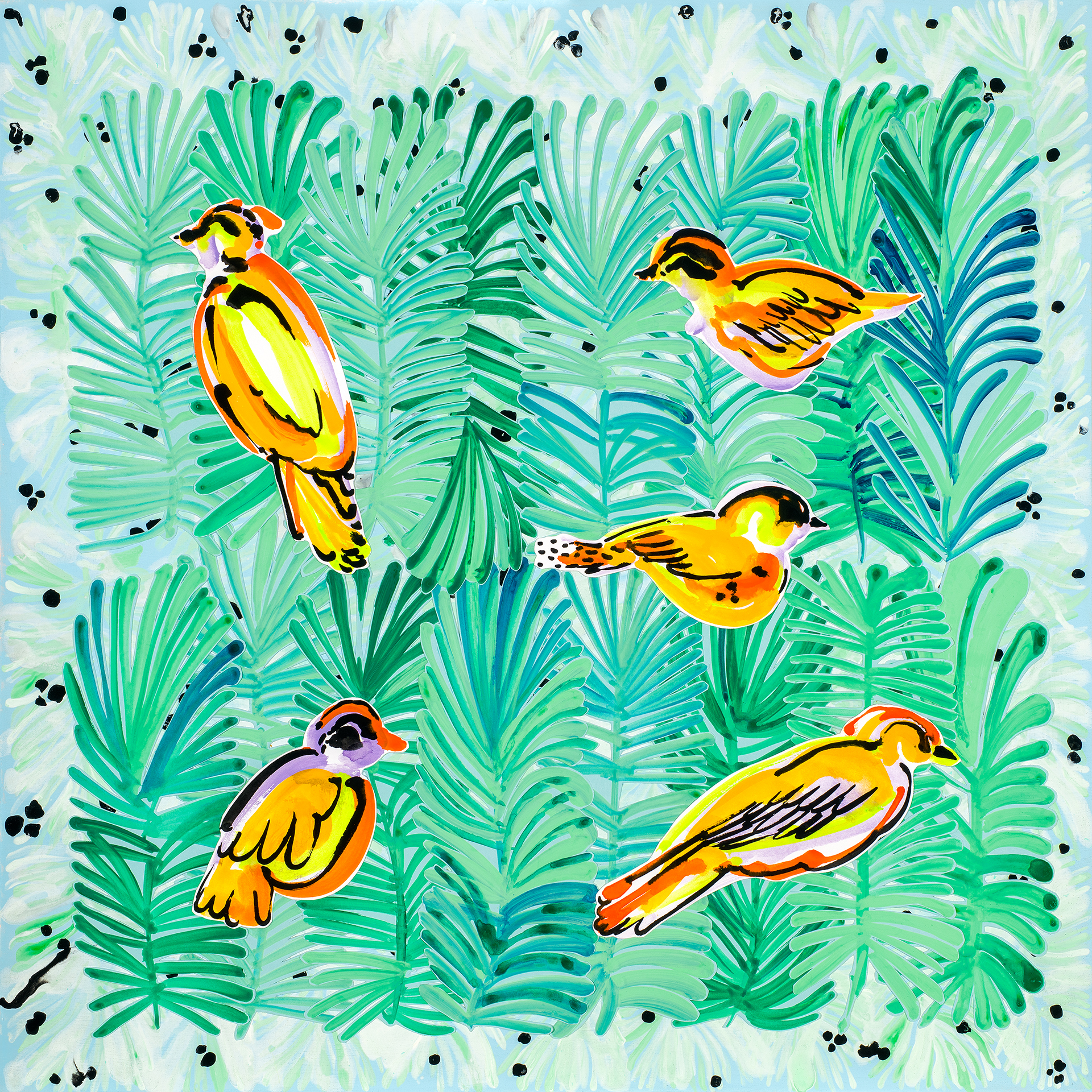 Hand cut and painted mixed media paper collage. Made with gouache, india ink, acrylic and paper. 22″ x 22″