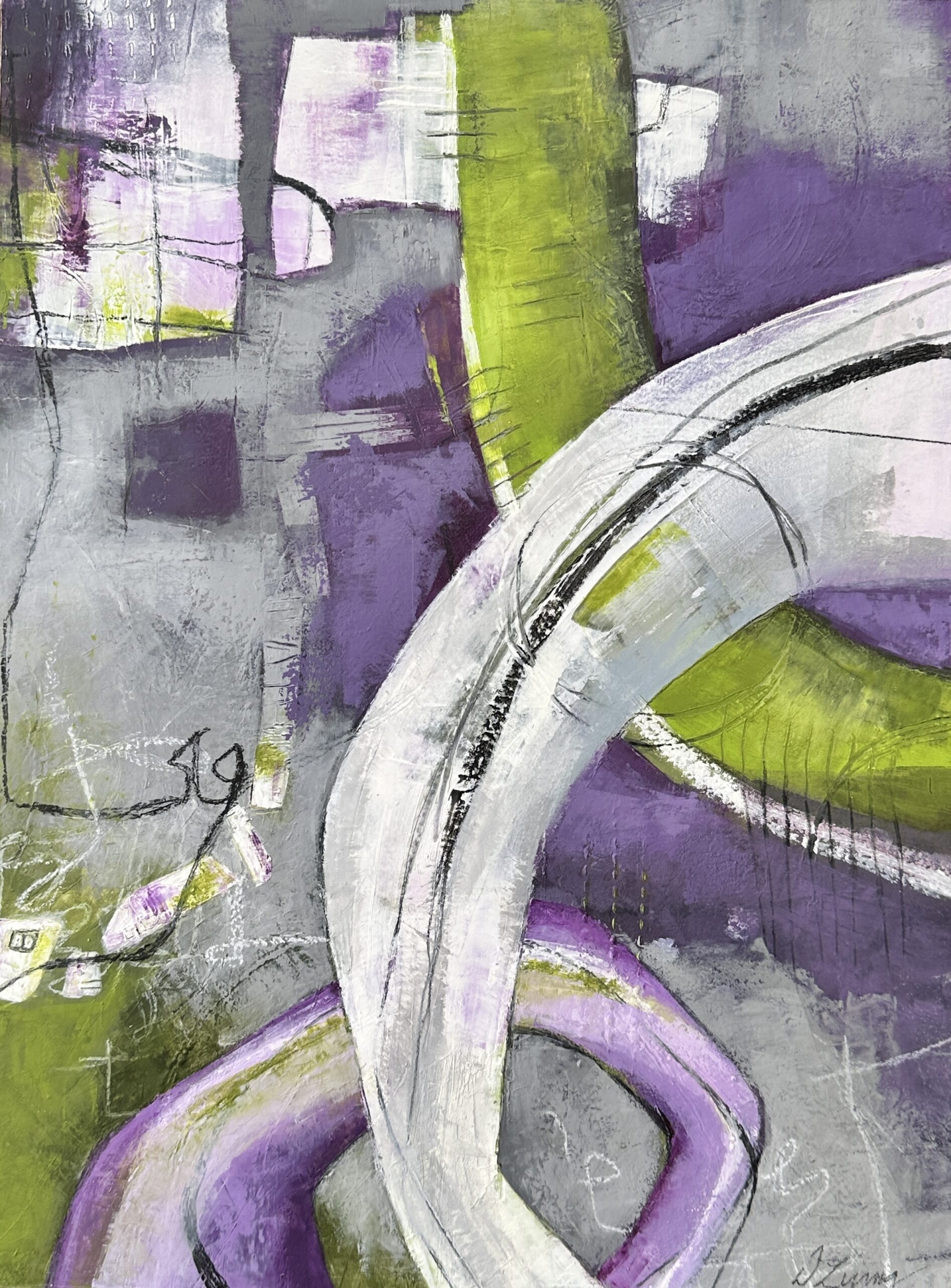 An expressive art piece conveying a sense of connection through use of colors and lines. Oils & Cold Wax Medium 12” x 16”