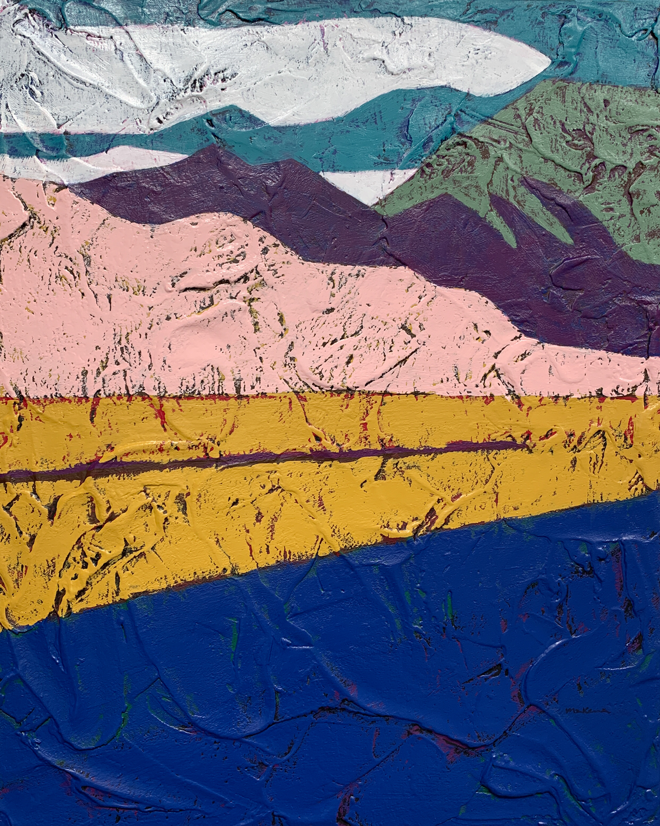The Great Sand Dunes in Colorado. A majestic culmination of geography and climate. Nestled up to the Sangre de Christo mountains with the enigmatic Medano Creek shallowly scooting along the flats. Acrylic on Canvas, 30×24″