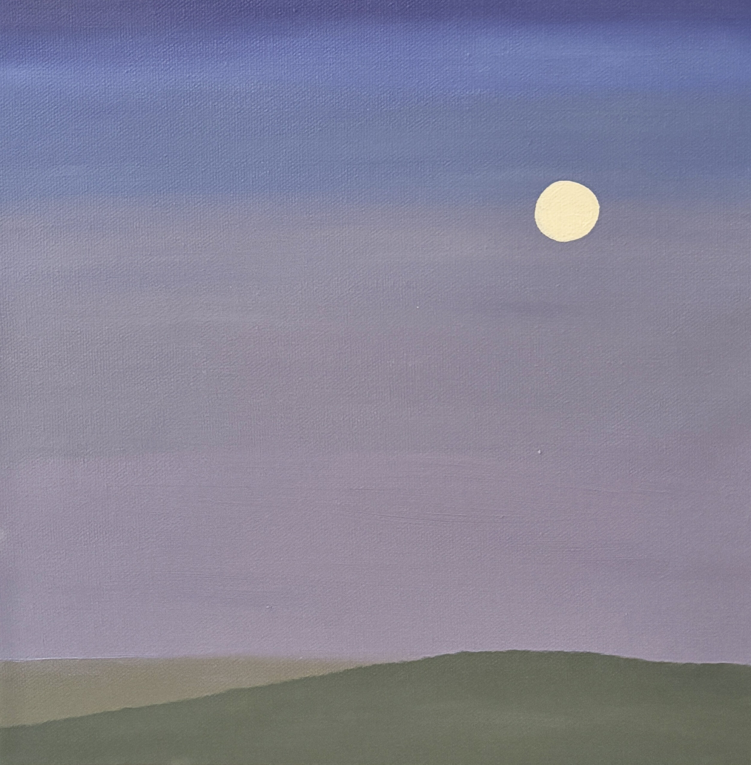 As a Contemplative Artist, watching the moon rise is one of my practices and I share my contemplation through my oil paintings. Oil on Canvas, 13″ x 13″.