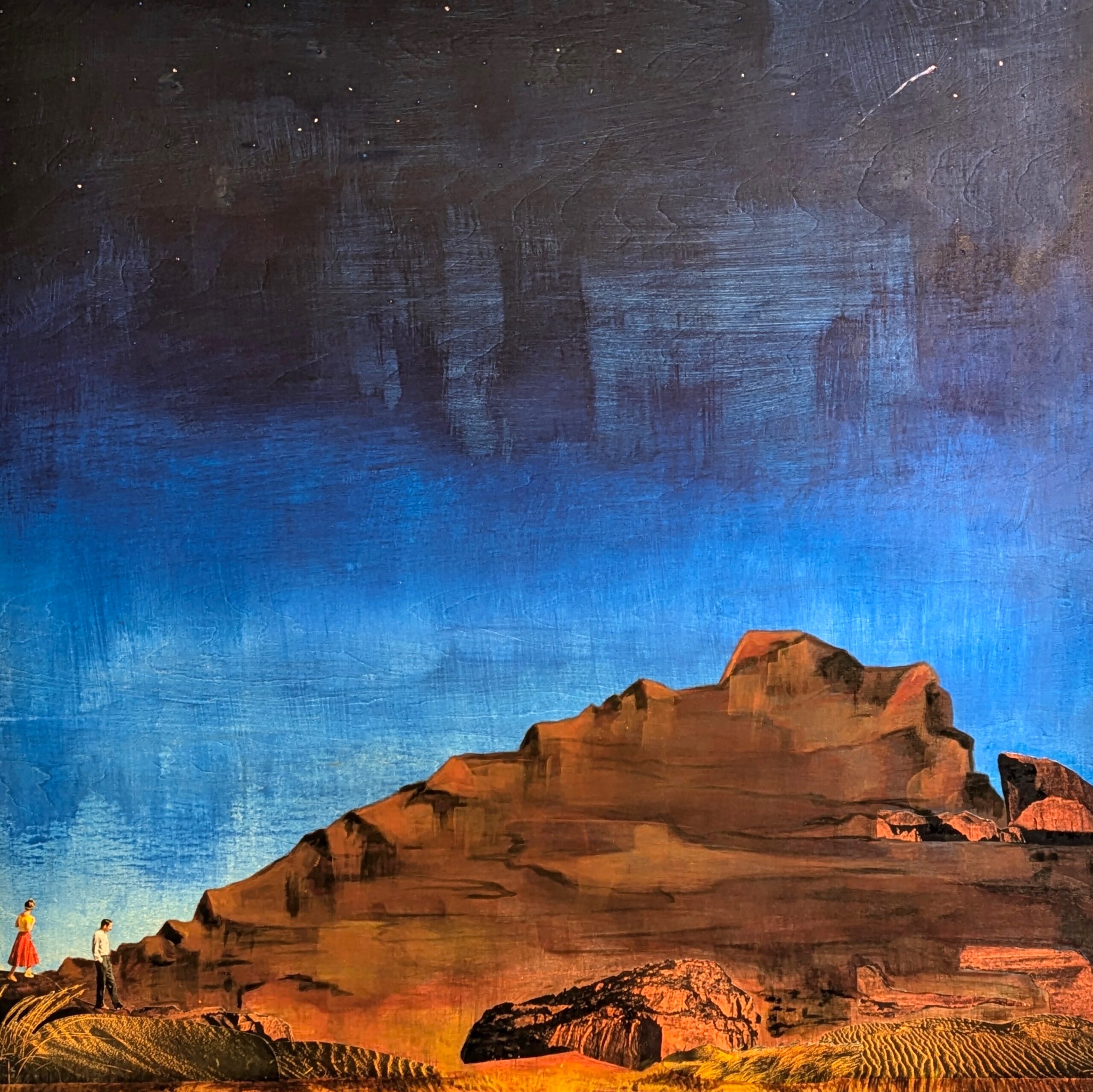 24″ x 24″, Acrylic and watercolor combined with vintage magazine collage on wood panel.