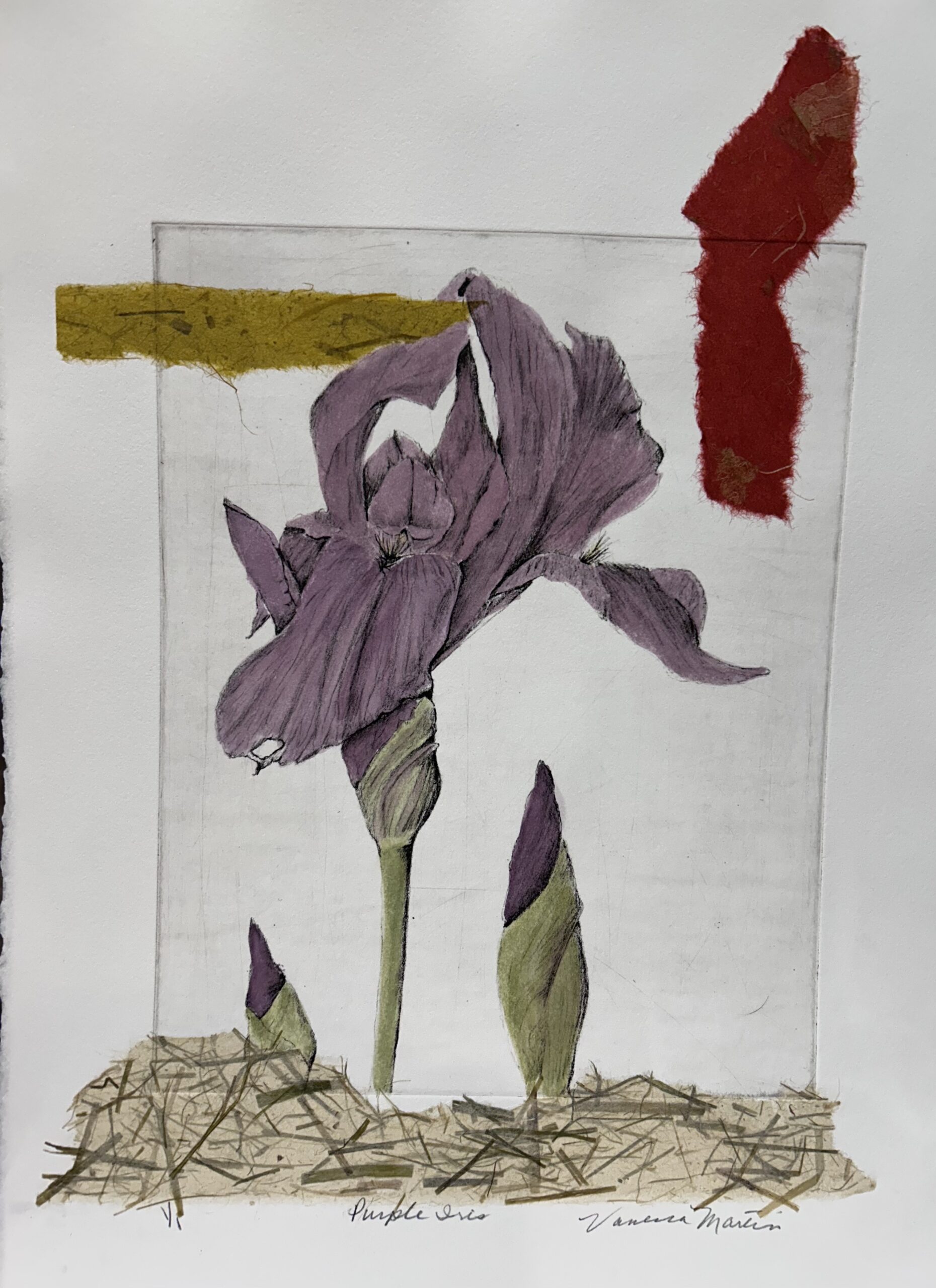Original hand painted etching with chine colle’, Printmaking, 16×20”