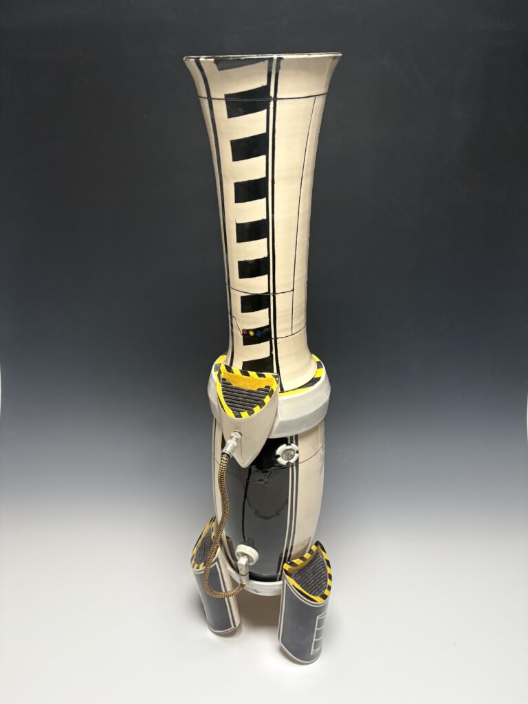 Wheel thrown and slab built three part vessel, Ceramic mixed media, 28.5″ x 9″ x 8″