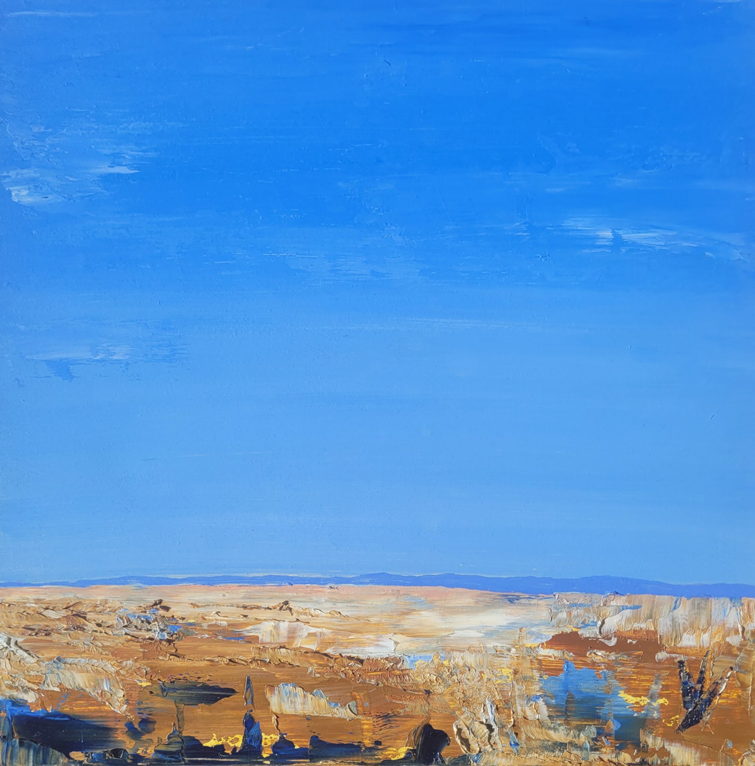 Landscape painting on cradled wood panel, Oil, 14 x 14 in