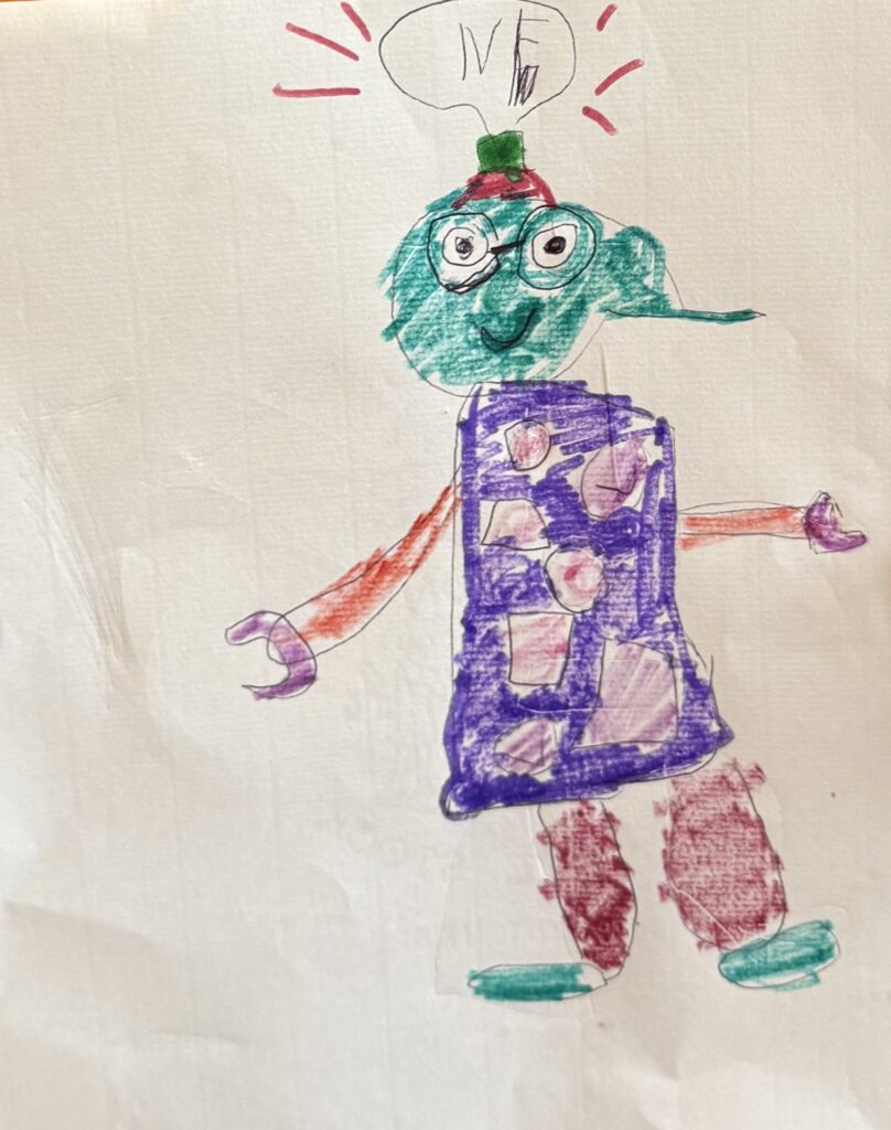 Rory helps me with my eyes cause he wears glasses. He has superpowers – he shoots lasers to tell me that I’m strong and heal my brain.