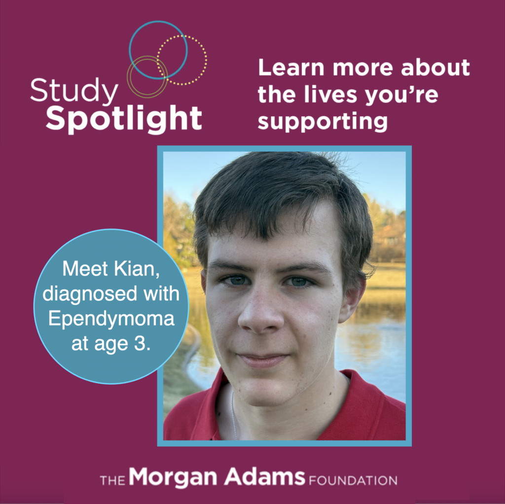 Ependymoma tumors like Kian’s can often have poor outcomes when using standard therapies, especially for kids whose tumors recur. A clinical trial created by Dr. Nicholas Foreman and Dr. Katie Dorris combined two proven drugs, one that targets a highly expressed protein in ependymoma and another that triggers cancer cell death. Kian was able to join this trial – and thankfully had a good outcome.