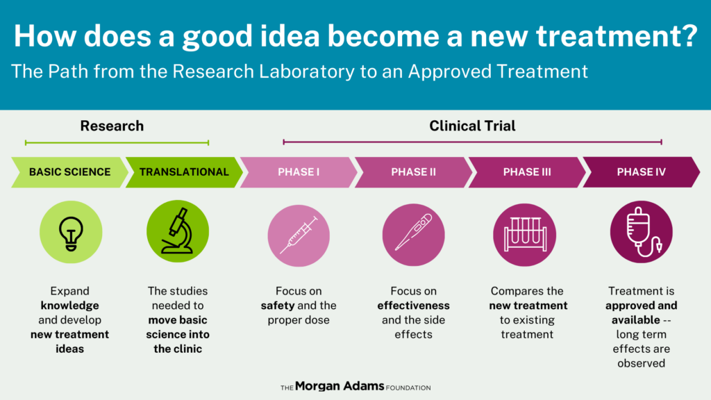 In 2026, we are allocating funds for two Clinical Trials via national consortia to help push forward lab research previously funded by The Morgan Adams Foundation.